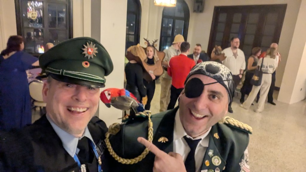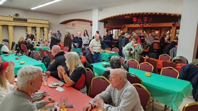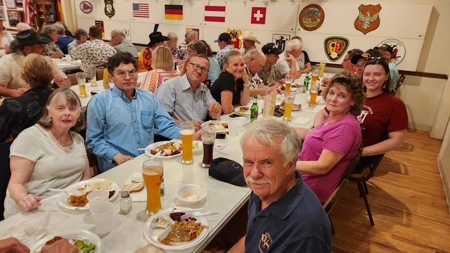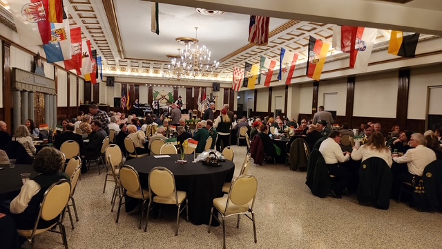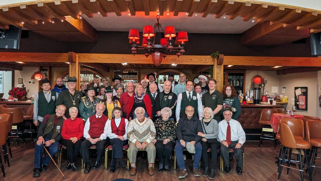 Our 2025 King and Queen Ball kicked off Friday evening with an informal meet and greet, which took place in the Brandenburg Room of the DANK Haus. This year we had nearly 60 of our guests come to our pre-event, event. A libation was provided gratis to all who came courtesy of King elect Matt and Queen elect, Dahra and additionally by club member Brad who along with John M., kept our guests happy.