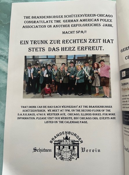 The BSV-Chicago was proud to have members representing the club at GAPA’s 50th Anniversary Octoberfest celebration. Above is a copy of their ad book, and our ad in it