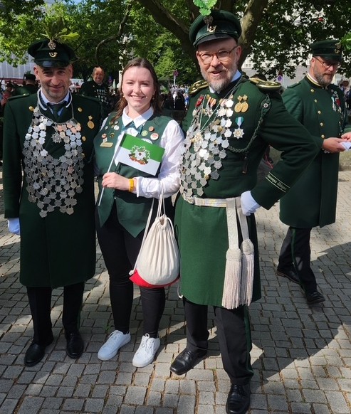 To see a video of the entire Schuetzenausmarsch, which was broadcast live in Germany, click the link below, and to see Matt and Brittany marching with Hannover Bothfeld, start the video before the 9:40 minute mark until just after the 10:00 minute mark. You guys both look great! https://www.ardmediathek.de/video/doku-und-reportage/schuetzenausmarsch-in-hannover/ndr/Y3JpZDovL25kci5kZS9wcm9wbGFuXzE5NjM3NTU1MV9nYW56ZVNlbmR1bmc