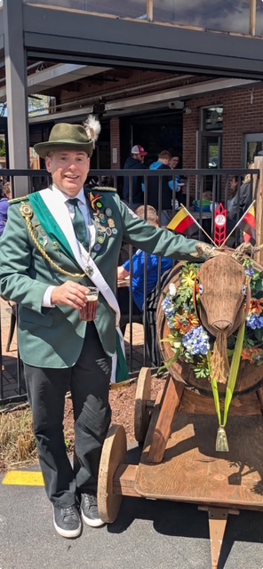 4/26: Our New King (below) carries the honor of the BSV alone upon his shoulders at the recent Roselle, Illinois, Bockfest. He reports that it was an excellent time and hopefully we can join him there in 2026. Thanks, Matt