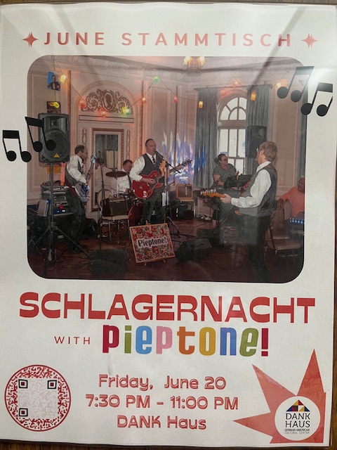 5/30: Pieptone continues to entertain the Northside, they will be appearing in June at the monthly DANK Stammtisch-Flyer Below